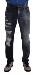 Gorgeous, brand new with tags 100% Authentic Dolce & Gabbana tattered denim jeans crafted from cotton features a zipper and button closure.