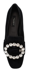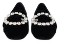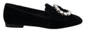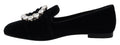 Black Velvet Crystals Loafers Flats Shoes