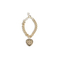The Coeur Royal chain Bracelet by Valentino Garavani is a refined and romantic piece of jewelry made of gold-plated metal. Featuring a shiny black heart-shaped charm, it is embellished with the iconic Signature VLogo on the front and delicate openwork on the back. The swivel lobster clasp ensures practicality and security. An elegant accessory, perfect for adding a distinctive and feminine touch to any look.