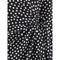 The Como Dress in Crêpe de chine by Crida Milano is a garment with sophisticated and feminine appeal. The wrap model, with its draping on the front, creates a fluid and enveloping effect that enhances the figure. The V-neckline adds a touch of sensuality, while the polka dot pattern gives a playful yet elegant character. The tie bow on the left hip introduces an element of originality, gently emphasizing the silhouette. An elegant drape created by a side stop at the waist gives the dress an unprecedented and refined note, making it perfect for special occasions or a sophisticated daytime look. The crepe de chine fabric adds a touch of luxury and comfort, making this dress a true classy wardrobe piece.