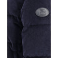 The Burberry cropped Corduroy Down Jacket redefines outerwear with a refined, contemporary edge. Featuring an oversized fit and dropped shoulders for modern volume, it comes with a stand-up collar and a concealed detachable hood for added functionality. The two-way zip closure, elasticated cuffs, and drawstring hem enhance comfort and wearability, while the straight sleeves and clean silhouette keep it versatile. Crafted in corduroy and padded with goose down, it is finished with the brand’s signature logo on the left shoulder, embodying tactile luxury and urban sophistication.