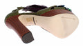Green Leather Crystal Platform Sandal Shoes