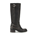 Chloé’s Dakota biker Boots reinterpret the classic biker style with a sophisticated twist. Crafted from grained and brushed calfskin, they feature a sturdy construction with a tubular shaft and rubber-laminated heel. Paddington buckles in a silver finish add character and recognition to this knee-high model, perfect for a bold, contemporary style.
