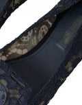 Dark Blue Taormina Lace Slip On Flats Shoes