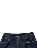 Dark Blue Tattered Wide Leg Men Denim Jeans