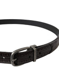 Dark Brown Perforated Leather Metal Buckle Belt Men