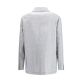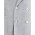 The Deconstructed Blazer by Brunello Cucinelli is crafted from wool and cashmere grisaille with bouclé yarn, offering a lightweight texture and a subtle speckled effect. The one-and-a-half-breasted model with six-button closure features notch lapels, patch pockets, a ticket pocket, and a chest pocket. The signature “Solomeo Shoulder” provides structure without padding. Finishing details include four-button cuffs, double back vents, and a half cupro lining.