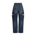 The Denim Jeans with Cut-Out Detail by Maison Margiela reflect the maison’s conceptual aesthetic, transforming an everyday piece into an avant-garde statement. The high waist and classic five-pocket construction are paired with a button and zip fastening, while the cut-out opening introduces an unexpected element that redefines the silhouette with personality.