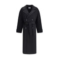 Dynamis Studio’s double-breasted long Coat is a timeless classic revisited with an essential and refined style. Featuring classic lapels and a front button closure, it has a built-in belt to tie at the waist that enhances the silhouette. Two welt pockets complete the design, making it a versatile garment ideal for any occasion.