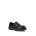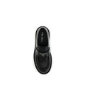 Prada’s leather Double Chocolate Loafers feature a band decorated with an enameled metal triangle, the brand’s distinctive symbol. They feature a stitched tray with burlotto and a volumetric rubber sole with double welt, while the leather insole ensures comfort and quality craftsmanship.
