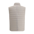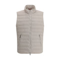 Brunello Cucinelli’s Down Vest is a stylish and functional garment featuring a high collar that offers added protection and warmth. The front zipper closure ensures practicality, while the two welt pockets with side zippers add functionality without compromising style. The monochrome pattern lends a clean, sophisticated look, while the quilted design and all-over padding ensure optimal comfort and warmth. A perfect garment to face the coldest days with elegance.