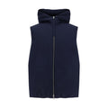 Jil Sander Down Vest ith an essential and functional design, made in a monochrome pattern. The model features a high collar with integrated hood, front closure with a double-slider zipper and two side welt pockets. The hem is adjustable via internal drawstring for a customizable fit. A versatile and contemporary garment, ideal for completing layered looks with minimalist elegance.