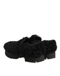 Dress Black Fur Leather Slippers Men Shoes