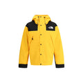 Dryvent Mountain waterproof Jacket by The North Face features a high collar and adjustable drawstring hood for tailored protection. Features front closure with double-slider zipper and button flap, two zippered welt pockets on the front, and adjustable Velcro cuffs for comfort. The iconic monogram is featured on the front and back. The hem is adjustable via internal drawstring, providing a customized fit and protection from the elements.