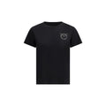 Pinko’s T-Shirt features a logo embroidered with rhinestones and pearls positioned on the left side of the front, adding a precious and refined detail that embellishes the simple and contemporary design of the garment.