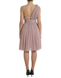 Pink One Shoulder Pleated Lame Tulle Dress