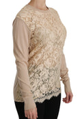 Beige Lace Long Sleeve Top Cashmere Blouse