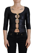 Black Cotton Stretch Open Chest 3/4 Sleeve Top