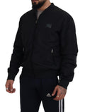 Black Nylon Logo Bomber Zipper Jacket