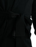 Black Cashmere Long Sleeves Belted Wrap Robe