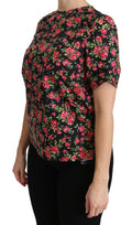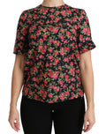 Black Floral Roses Short Sleeve Top Blouse