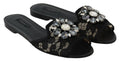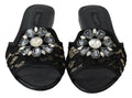 Gorgeous brand new with tags, 100% Authentic Dolce & Gabbana Mules featuring a transparent mesh upper covered with Taormina lace. Satin trims and jewel flower made with multitone crystals. Leather insole, leather sole.