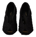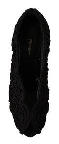 Black Cordonetto Ricamo Pump Open Toe Shoes