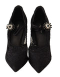 Black Lace Crystals Heels Mary Jane Pumps Shoes