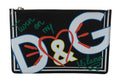 Black DG Print Mens Zipper Coin Purse Leather Wallet