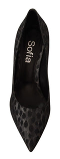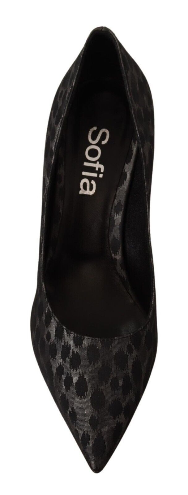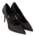 Black Leopard Leather Stiletto High Heels Pumps Shoes