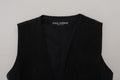 Black Brocade Button Down Sleeveless Vest Top