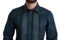 Absolutely stunning, 100% Authentic, brand new with tags Dolce & Gabbana Tuxedo Shirt with short collar and soft placket and ruffles in blue.