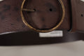 Dark Brown Wide Calf Leather Logo Round Buckle Belt