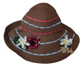 Brown Floral Wide Brim Straw Floppy Cap Hat