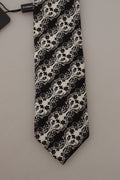 Black White Flower 100% Silk Print Adjustable Accessory Tie