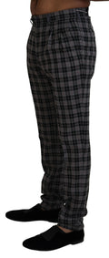 Gray Checkered Slim Fit Men Pants