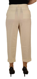 Ivory High Waist Cropped Folded Hem Trousers Pants