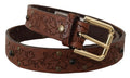 Brown Leather Floral Studded Metal Buckle Belt