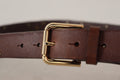 Brown Leather Studded Gold Tone Metal Buckle Belt