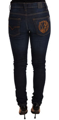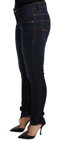 Dark Blue Cotton Low Waist Skinny Denim Jeans