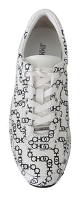 Step out in style with these exquisite brand new sneakers, complete with original tags, dustbag, and shoebox. Authenticity is guaranteed with these 100% Leather Jimmy Choo slip-on sneakers, featuring a striking black and white design and a bold Choo chain print for a touch of luxury. Perfect for adding a chic edge to any ensemble.