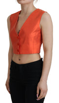 Orange Sleeveless Waistcoat Cropped Vest Top