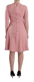 Pink 3/4 Sleeves Viscose Blend A-line Dress