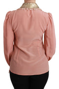Pink Silk Gold Sequin Lace Blouse Shirt