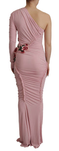 Pink Flower Embellished One Shoulder Dress