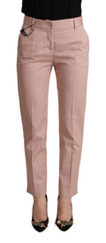 Pink Cotton Mid Waist Trouser Tapered Pants