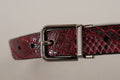 Red Exotic Leather Metal Logo Buckle Belt