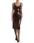 Brown Shiny Silk Sheath Sleeveless Bodycon Midi Dress