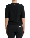Black Silk Round Neck Short Sleeve Blouse Top