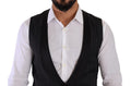 Black Striped Wool Silk Waistcoat Vest